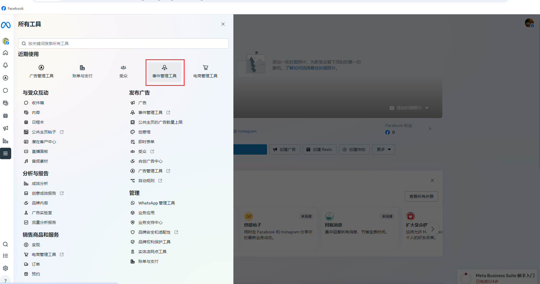 进入后台,如图在所有工具中找到“事件管理工具”: