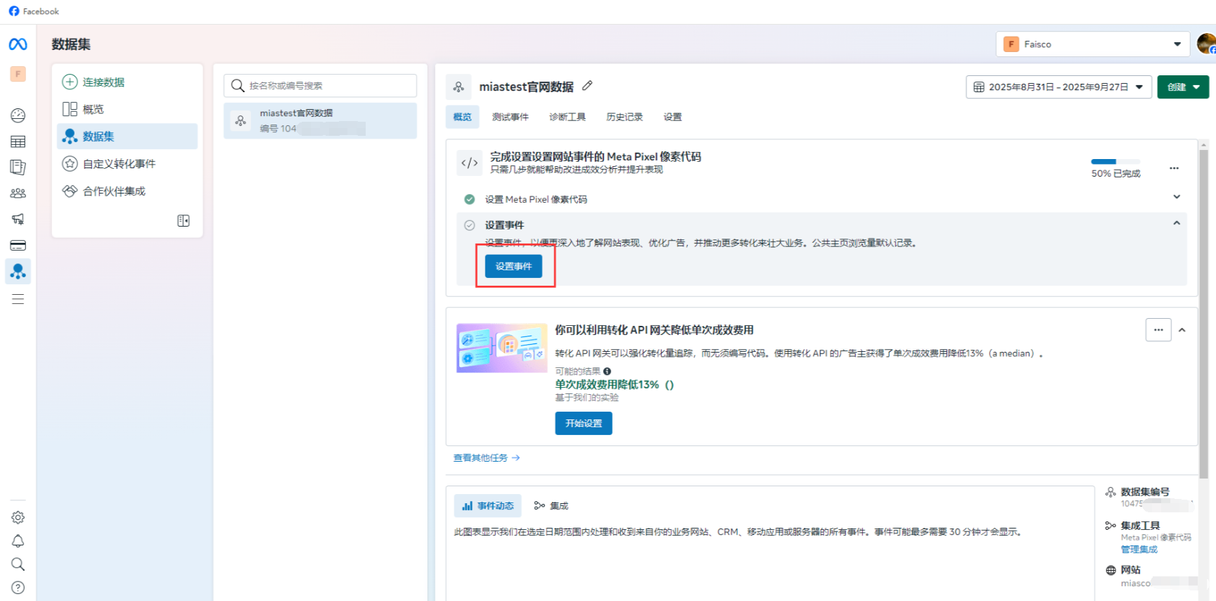 回到Meta后台,我们新设置的事件同步有一定的延迟,等待数据更新后,即可看到我们之前添加的数据。
