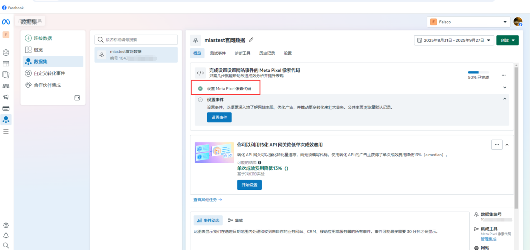 最后回到meta平台检查推送是否成功(留意新事件更新可能会有半个小时的延迟,请耐心等待并刷新页面)。