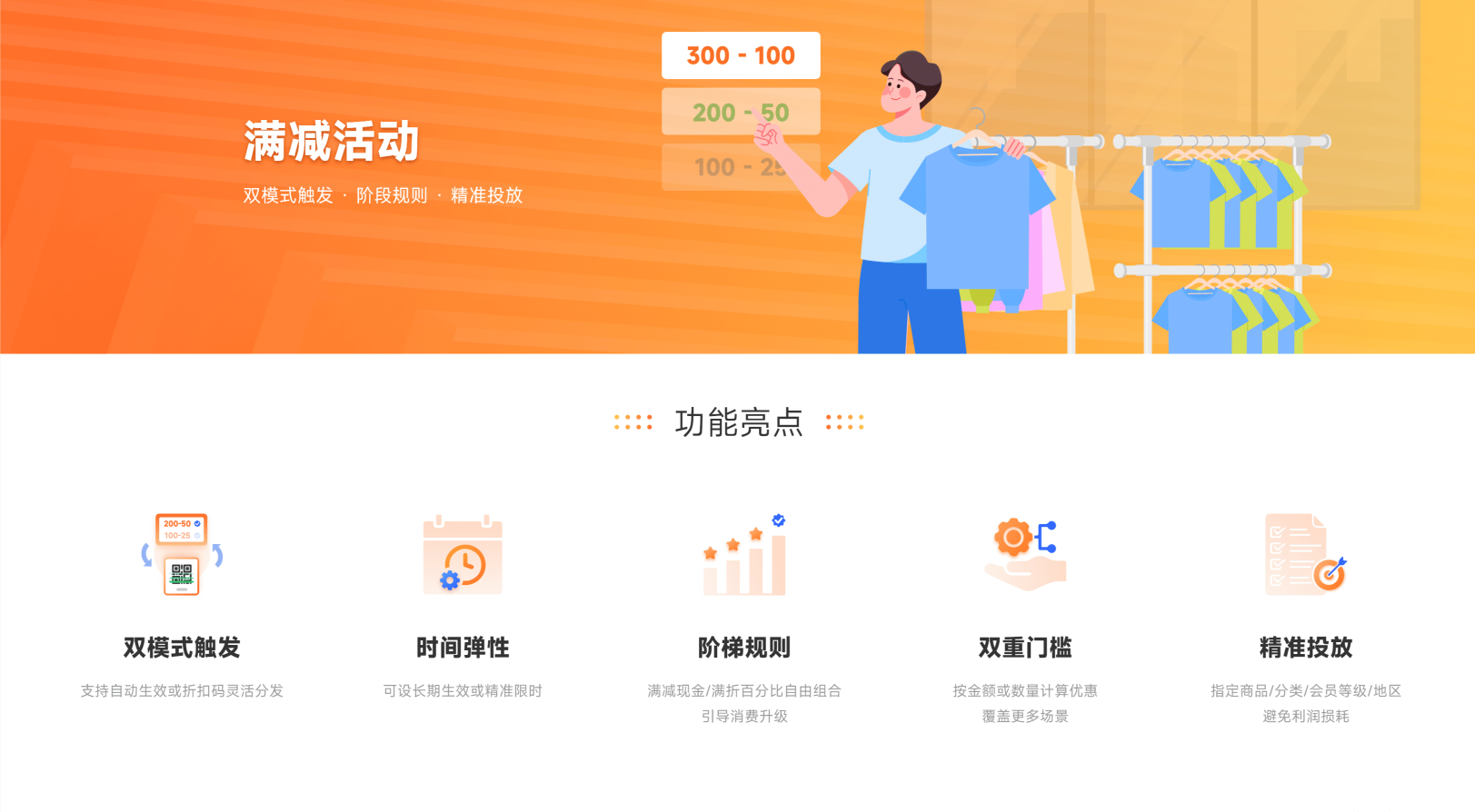 本教程展示如何开启满减功能,可灵活选择自动折扣促销 或 精准指定商品会员地区制定不同营销政策,把握全局销路。