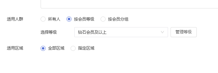 【适用人群】即根据会员等级,或者会员分组进行可享用优惠的人群限制